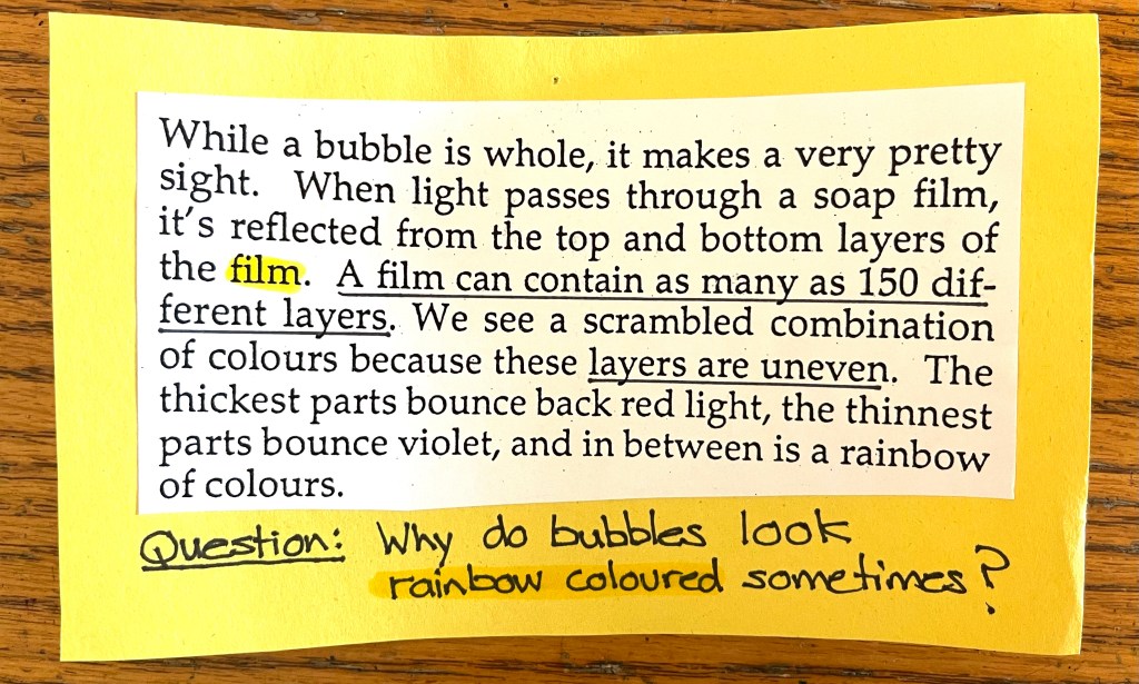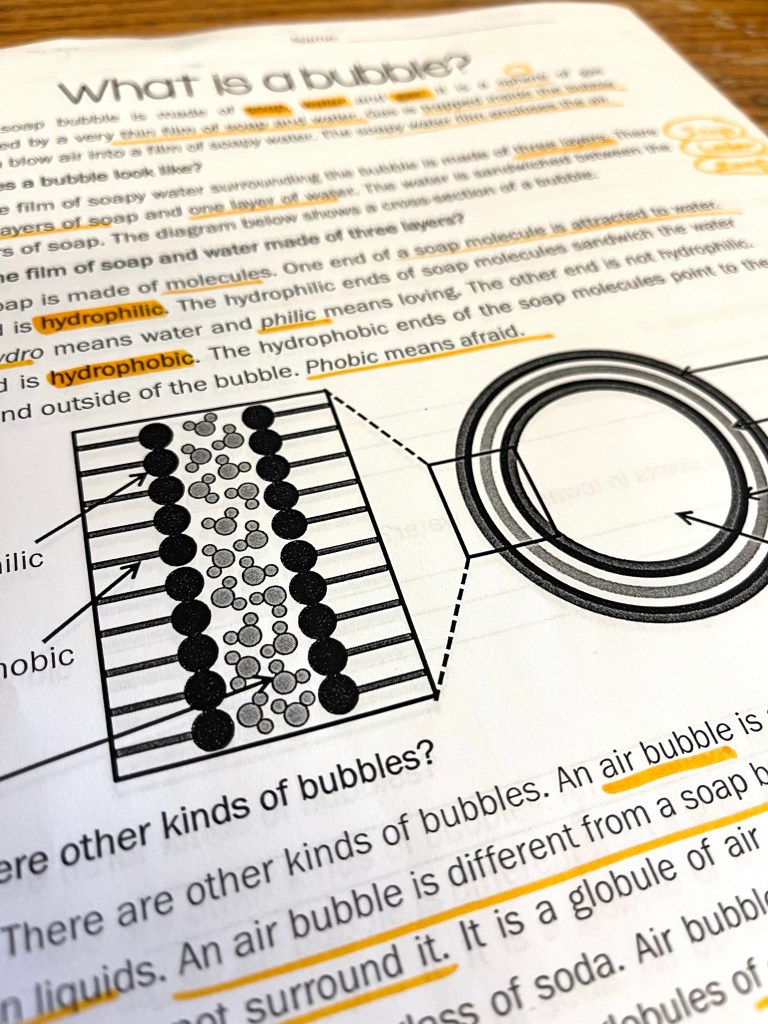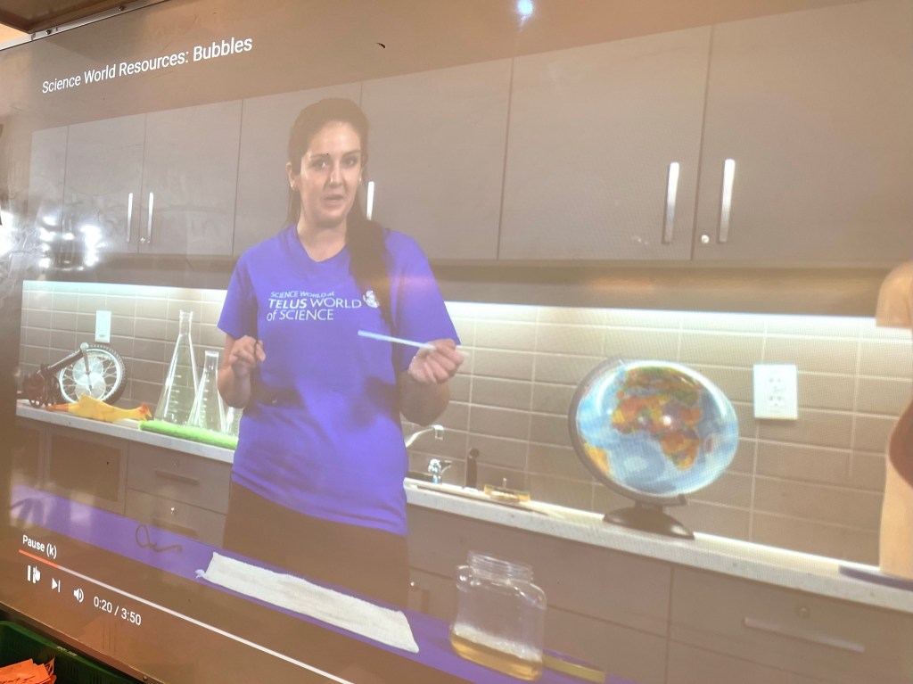 Next, we explored some text about bubbles and learned new vocabulary, and then we watched a Science World video about fun bubble tricks and special moves.