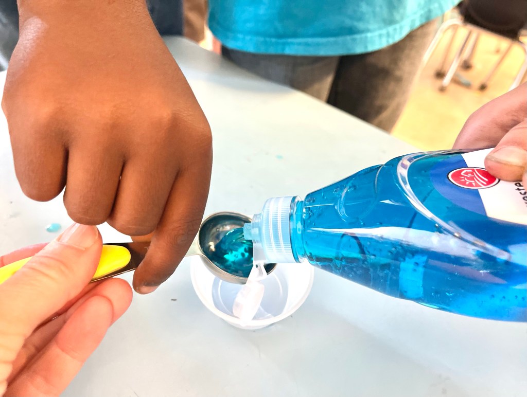 It was valuable to experiment to see how important the proper ratio of ingredients is to ensure big bouncy bubbles. Students often came back asking for more soap if they discovered they used too much water.
