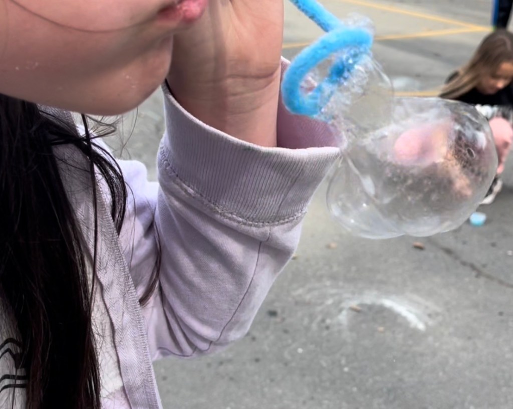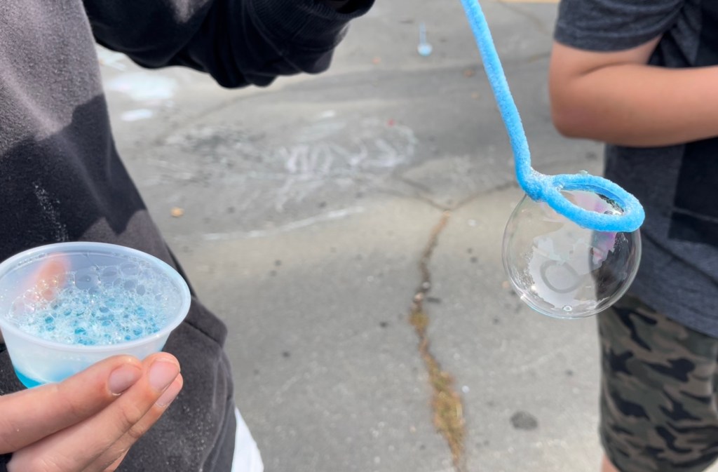 Students noticed that trying to blow bubbles into the wind was hopeless as they popped immediately. Yet, blowing bubbles in the direction the wind was blowing was way easier and lent lift to the bubbles— which helped them soared up several stories high.