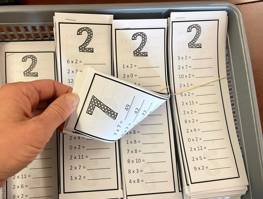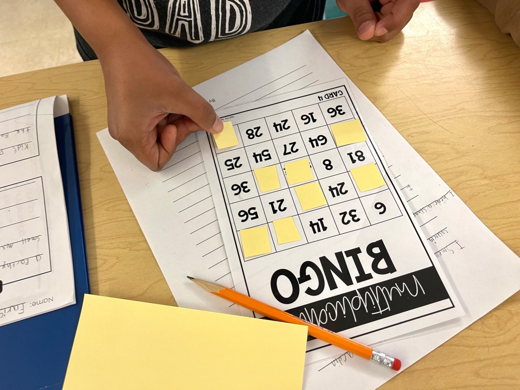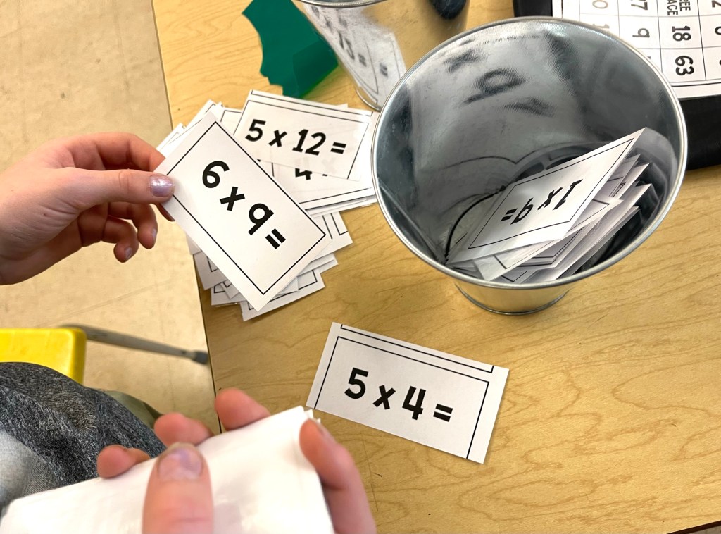 In Math, we have been reviewing the concepts of place value, telling time, and math facts (+, -, x, and ÷). A fun way we have been practicing multiplication facts is with Multiplication Bingo!
