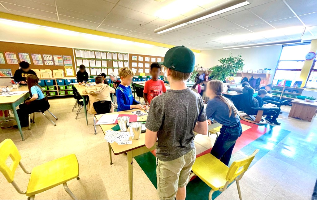 This Friday, the learning in division 4 began with independent reading and then storytelling practice in small groups. Then in Math class, we gamified reviewing place value using “base ten blocks” and continued work on a more challenging word problem involving finding the possible dimensions of a patio built with 75 tiles.
