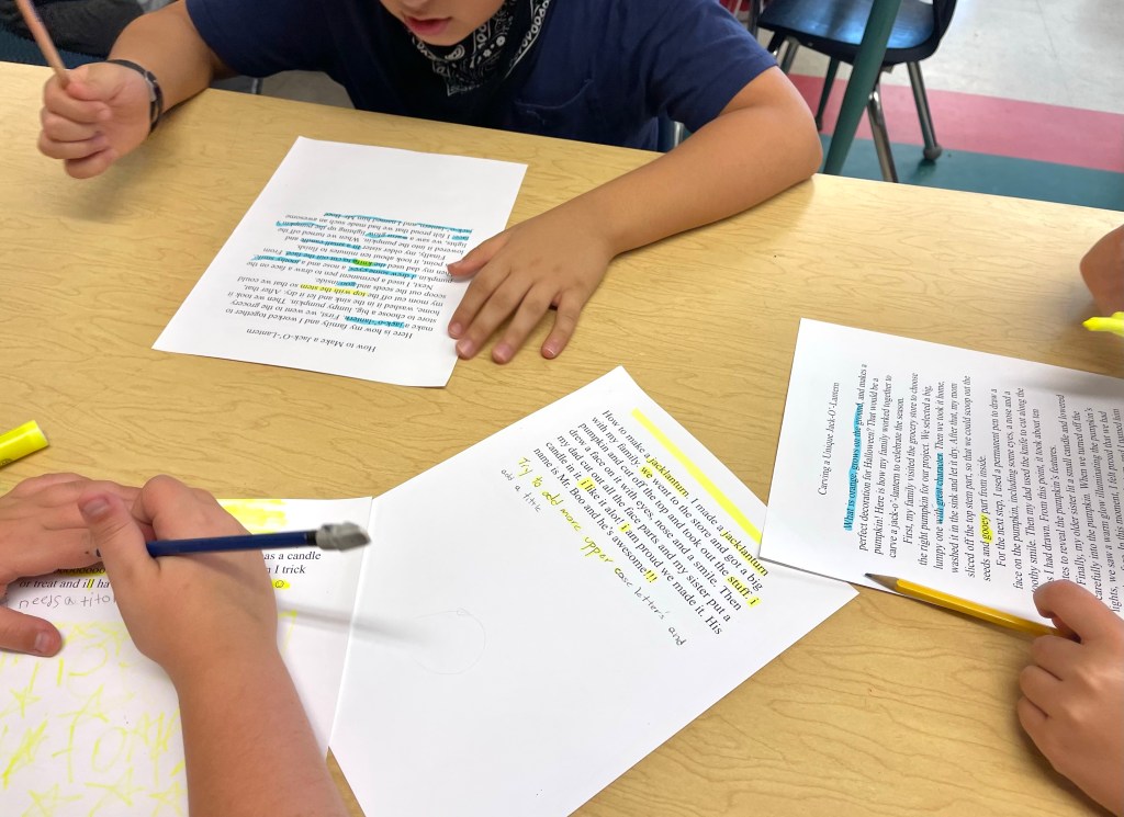 After rich peer-to-peer discussion, I joined in to help the students highlight some key differences between the pieces of writing.